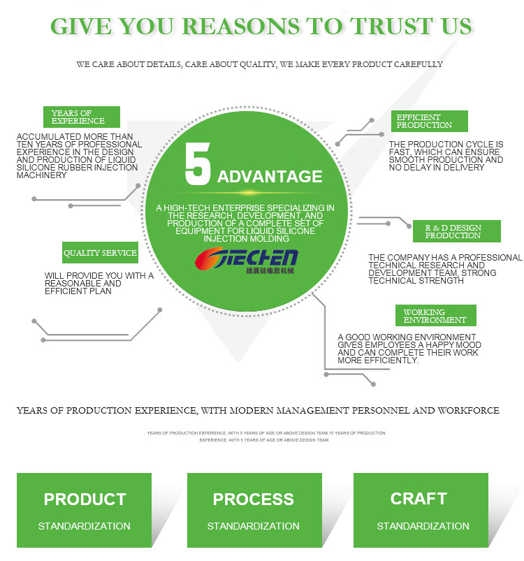 Company profile:Dongguan Jiechen Silicone Rubber Machinery Co., Ltd. is a high-tech enterprise specializing in R & D and manufacturing of liquid silicone rubber injection molding machine. The company has a professional technical research and development team, strong technical strength and perfect after-sales system to provide strong technical and service guarantee for customers. The company has advanced equipment, perfect technology, strong technical force, accumulated more than ten years of professional liquid silicone rubber injection machinery design and production experience, obtained a number of invention patents, reached the leading technical level in the industry.The company's liquid silicone rubber injection machine is widely used in medical, maternal and infant, auto parts, electronics, stationery, kitchen, diving, bathroom and other fields, and developed precision micro liquid silicone injection machine, liquid silica gel (solid to liquid) intelligent feeding machine, all-round to meet the needs of different customers."Liquid injection, Jiechen service" is the same principle we always adhere to. We welcome friends from all walks of life to guide and negotiate business!Contact person: Mr. Chen RuizhongTel: 86 0769 26628975Mobile: 13038846085Fax: 86 0769 26628579Address: Ji erheng Road, aoshitang Industrial Zone, Dongcheng, Dongguan, Guangdong, ChinaOfficial website: //very.lvdanban88.comCompany homepage: //www.jjiechenjixie.com//jiechenjx.1688.com